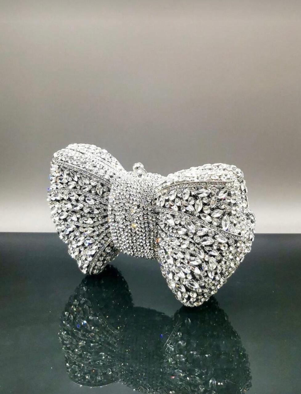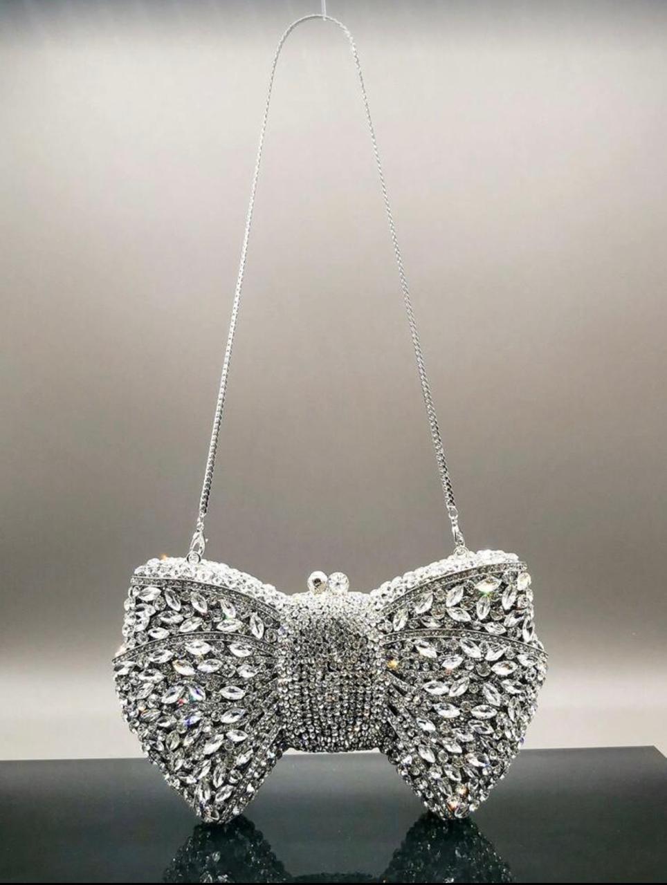 Home Produtos Clutch Prata pedraria formato em laço