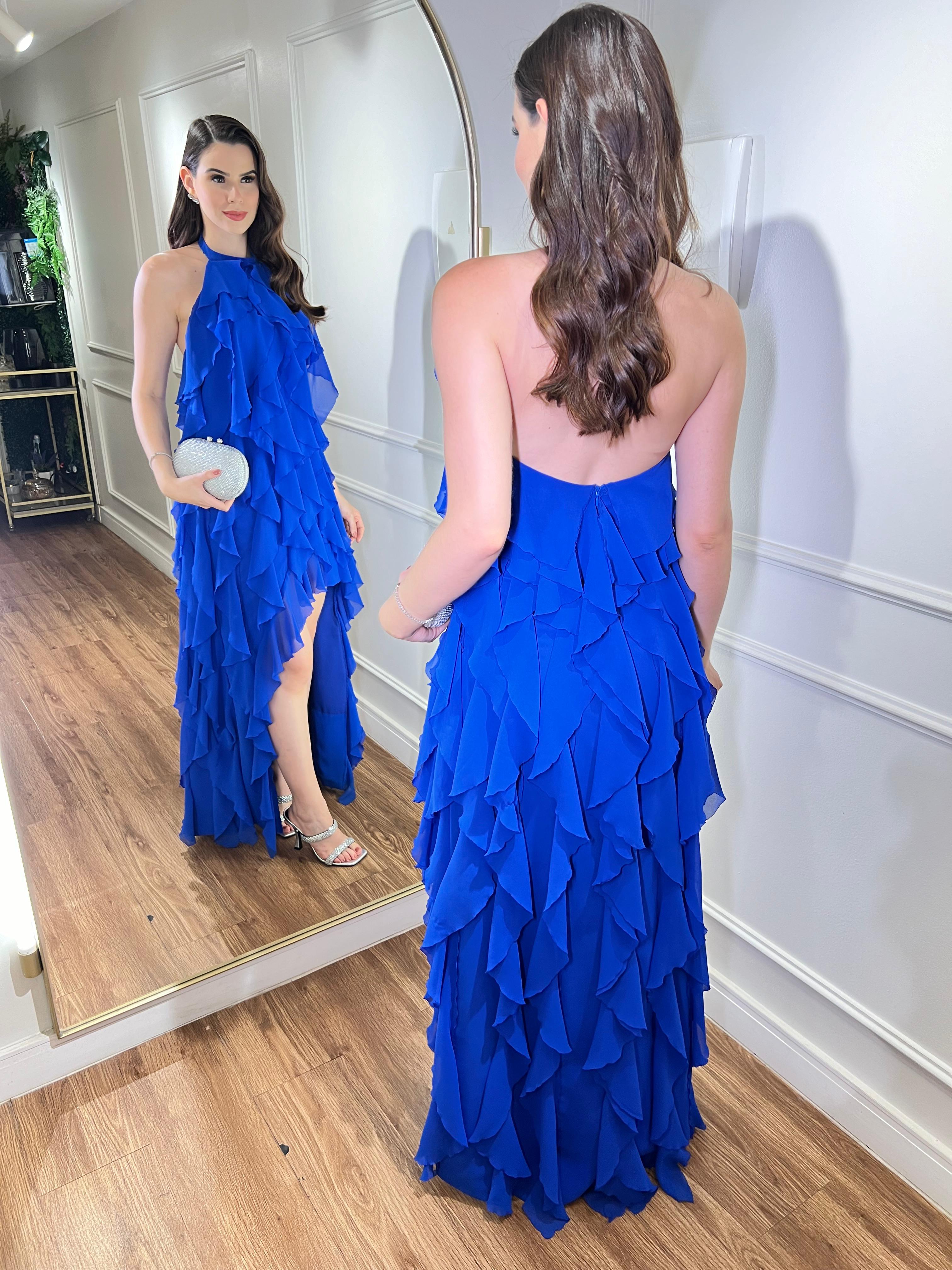 Vestido Azul BIC fluído frente única com cauda