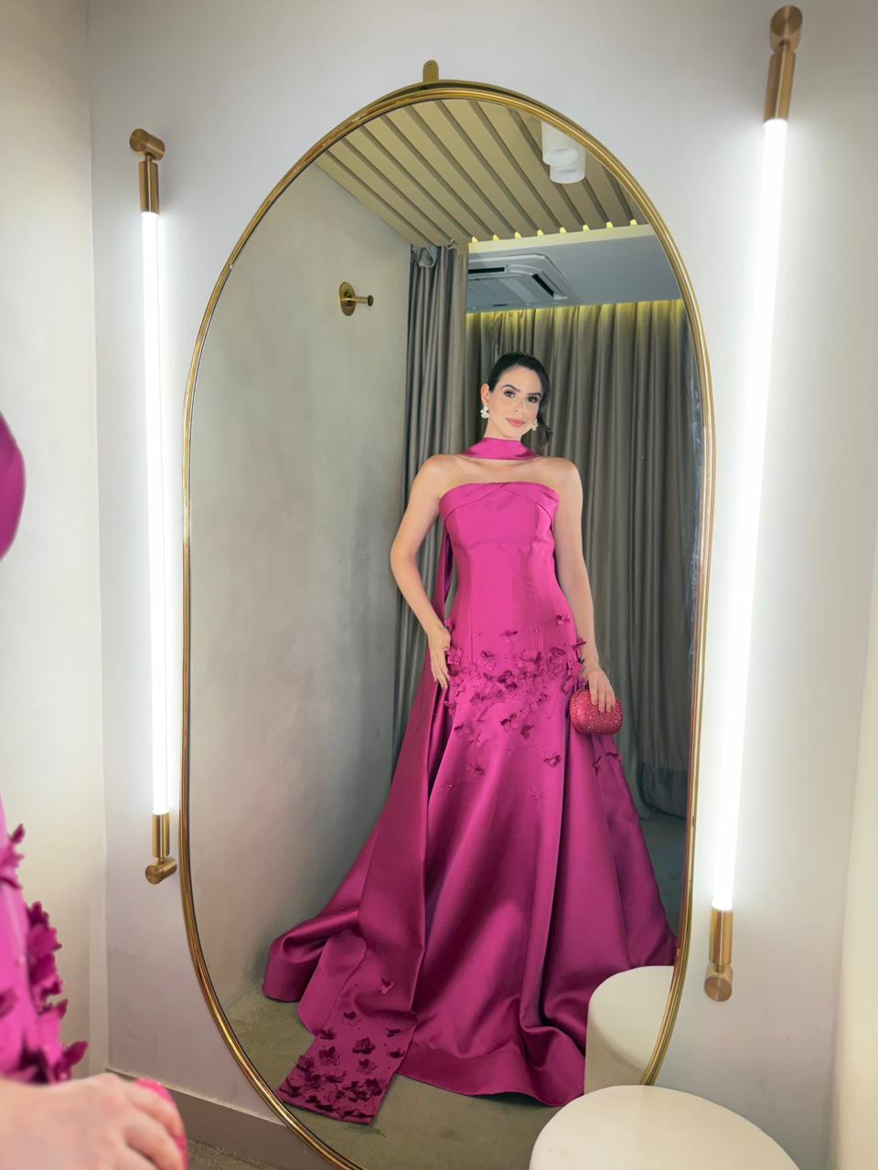 HomeProdutosVestido Fucsia tomara que caia estruturado com flores