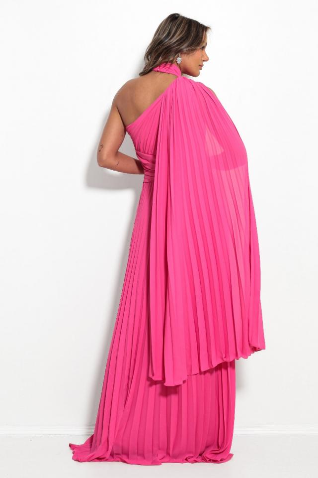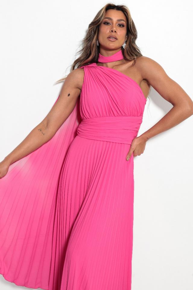 Vestido Pink capa unilateral plissado