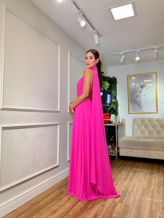 Vestido Pink fluído de capa frente única.