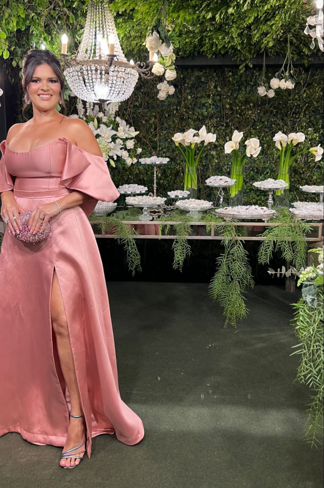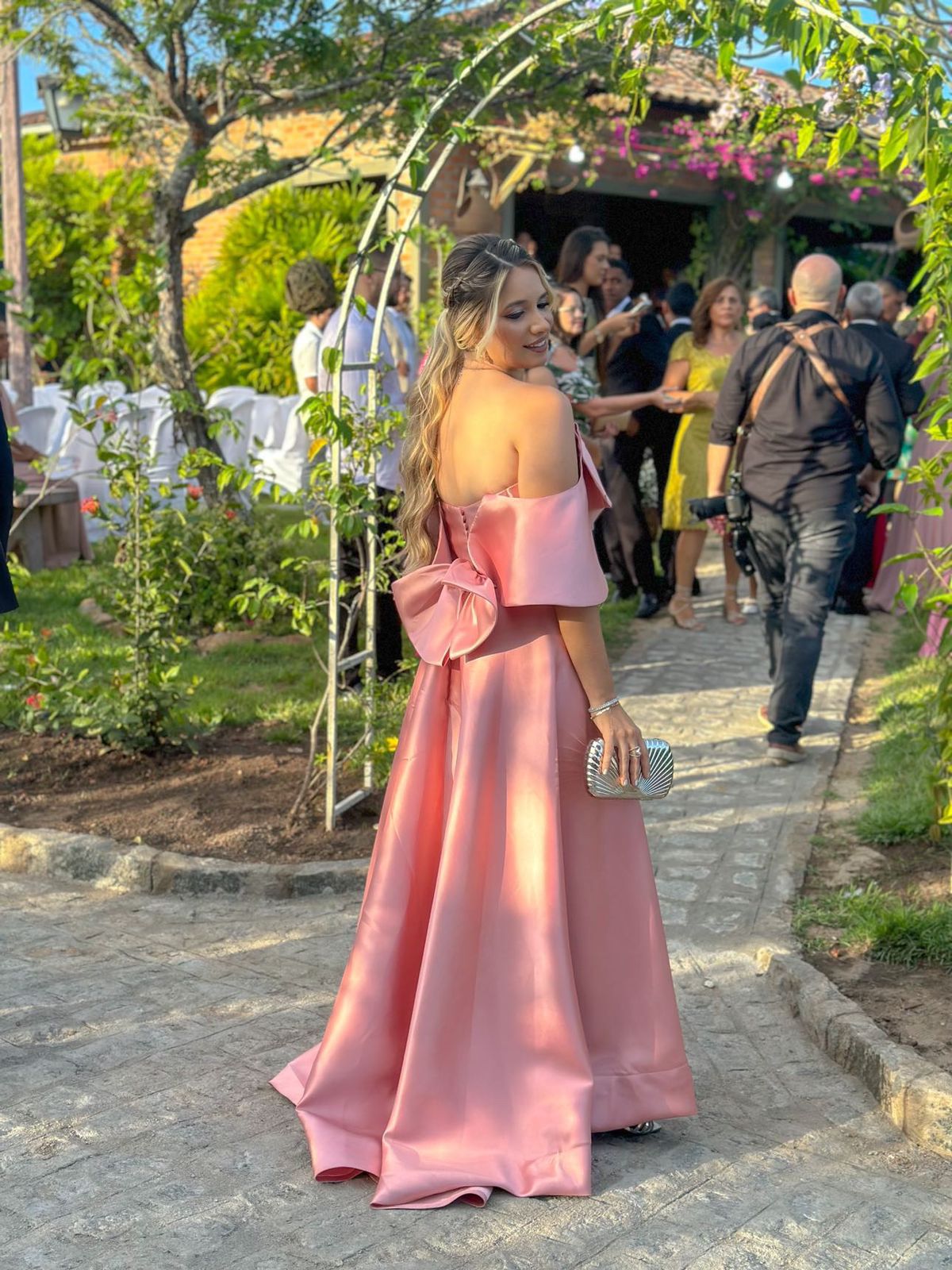 Home Produtos Vestido Rosa/Rose alfaiataria com fenda e laço