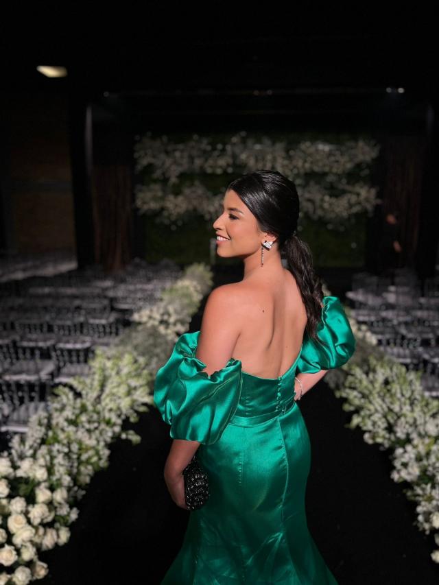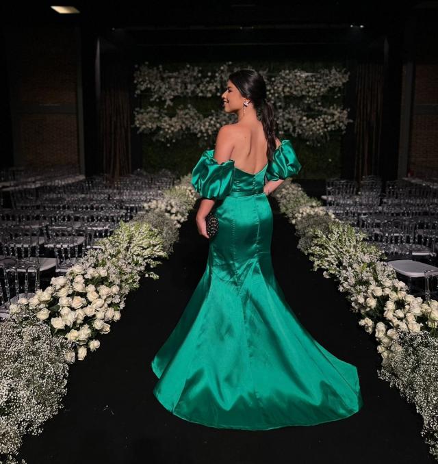 Vestido Verde Bandeira de alfaiataria com mangas bufantes.