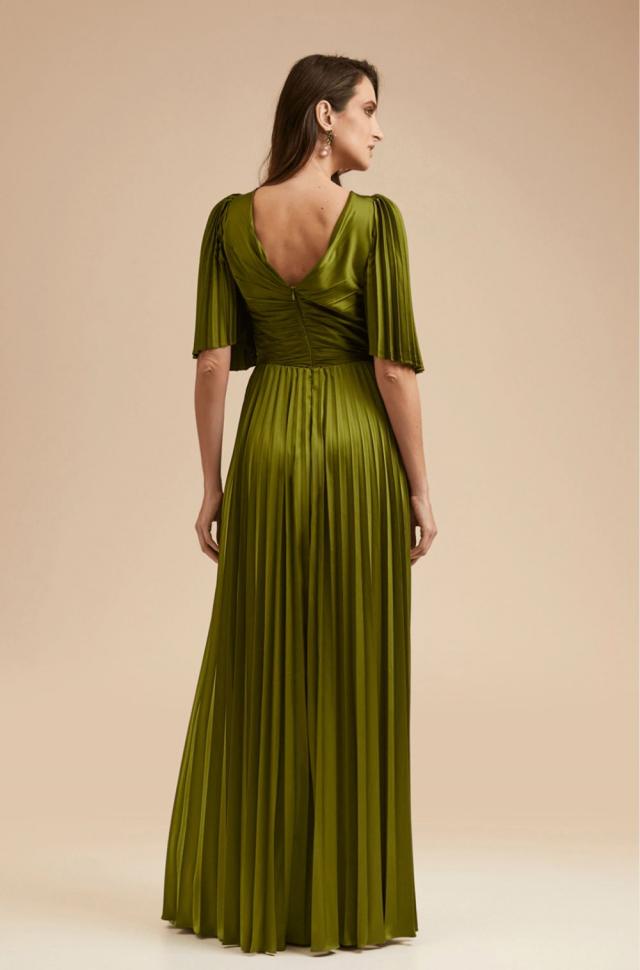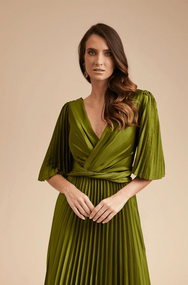 Home Produtos Vestido Verde Oliva plissado com mangas 48